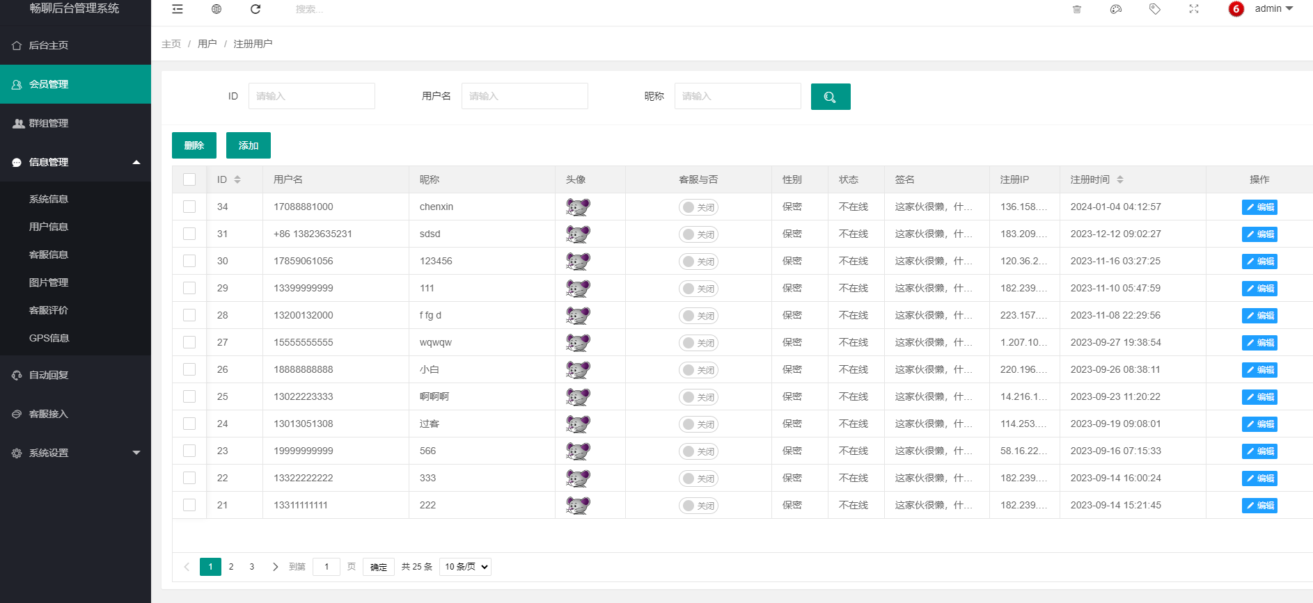 全新PHP+Socket在线客服系统,支持聊天,群聊,私聊,自动翻译,支持几十种语言,自动回复,无需第三方支持,所有数据保存在自已服务器上,软件自适应PC端和移动端,支持APP图标自定义,可以很好的嵌入自已的网站中,因为采用PHP7.3,可以应对大访问量访问。为了您可以很好的享受很好的售后服务,请不要购买盗版,我们的版本一直在升级中。